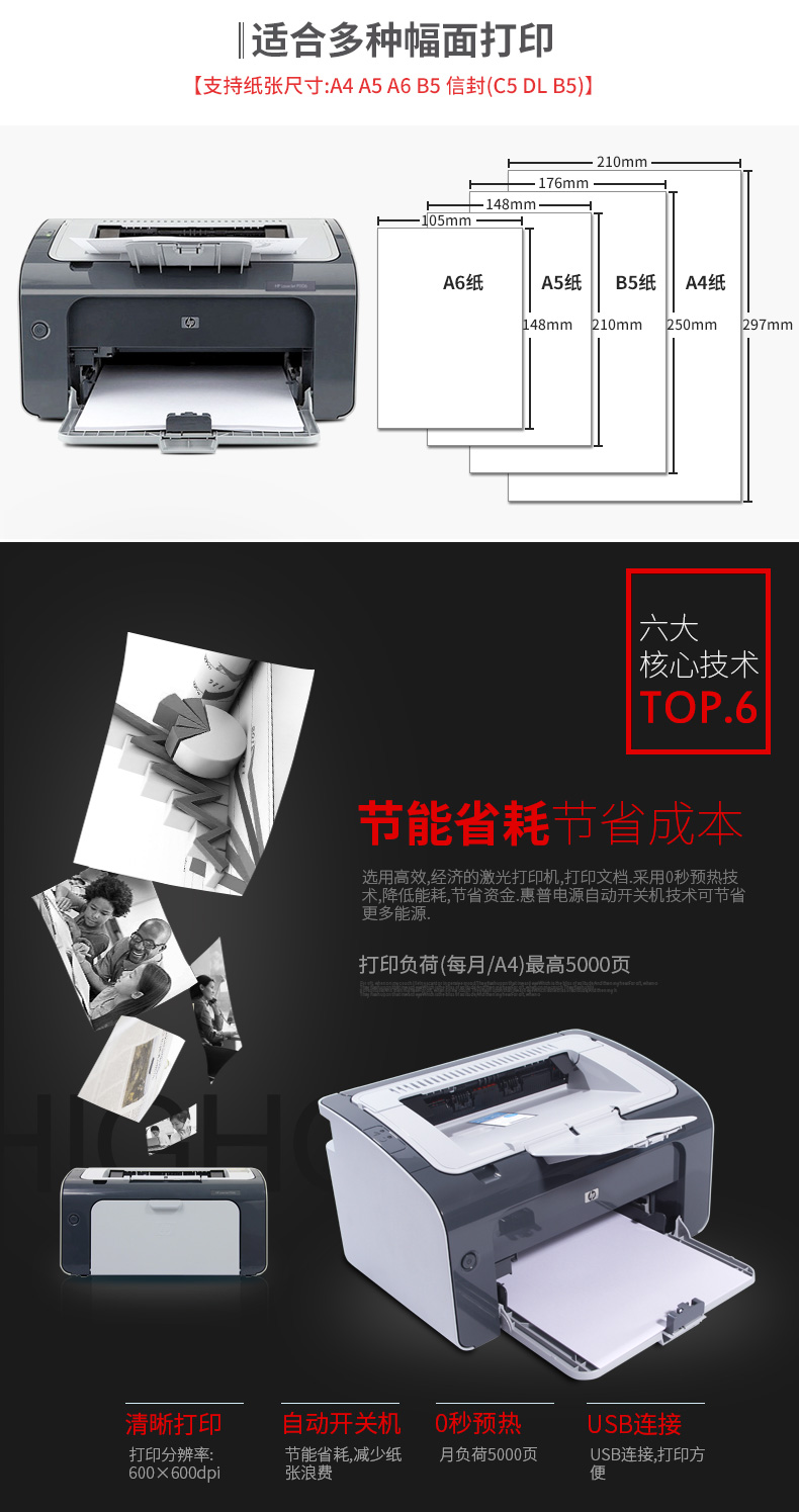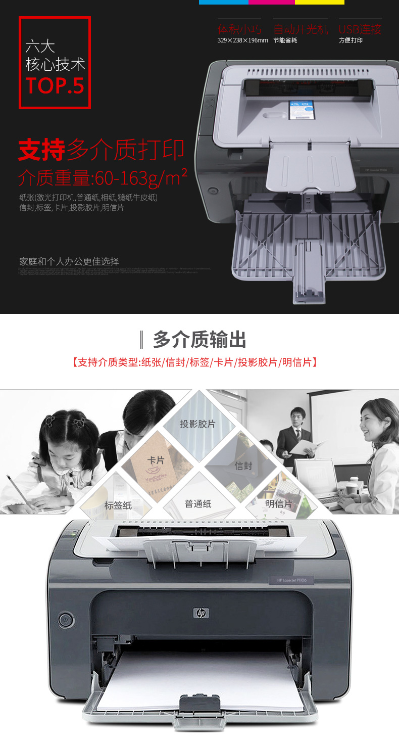 描述:紙張(激光打印紙,普通紙,相紙,糙紙,牛皮紙),信封,標(biāo)簽,卡片,投影膠片,明信片/介質(zhì)尺寸 A4,A5,A6,B5,明信片,信封(C5,DL,B5) 150頁(yè)進(jìn)紙盒:147×211-216×356mm