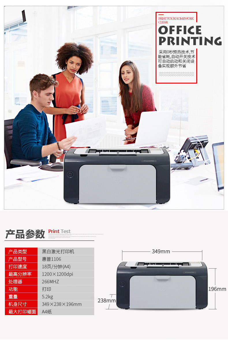 惠普/HP P1106黑白激光打印機(jī)