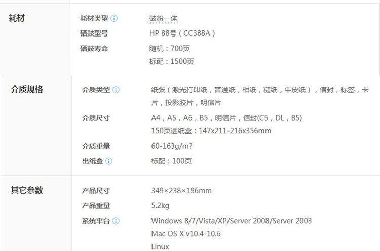 功能:黑白激光打印機(jī)