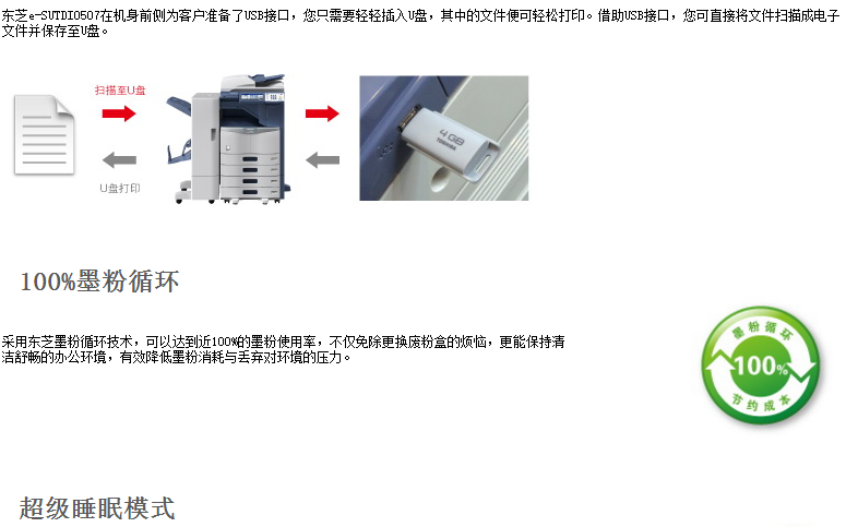 描述:東芝e-SUTDIO507的預(yù)熱時間控制在約20秒以內(nèi),首頁復(fù)印時間僅需3.7秒。連續(xù)輸出速度達(dá)到每分鐘50頁。標(biāo)配的雙面器更能有效地提高輸出效率和成本,減少紙張使用。
