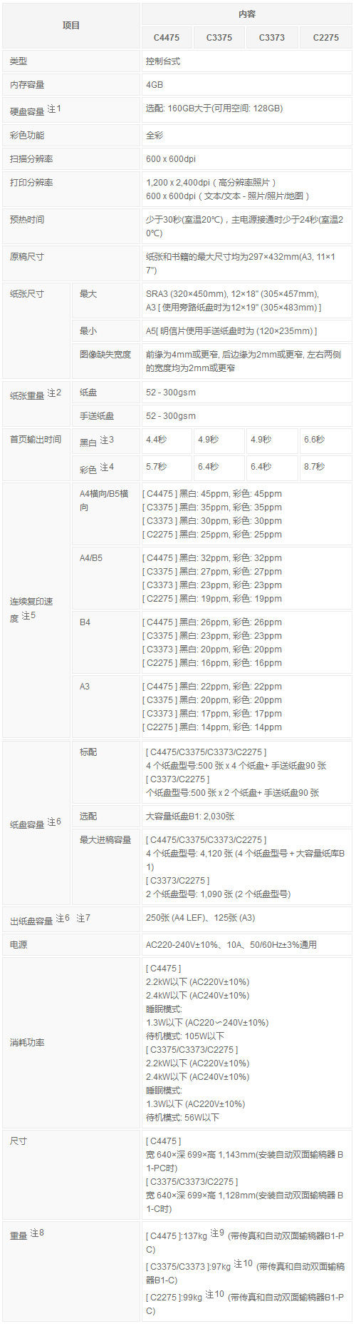 注1 DocuCentre-V C3375/C3373/C2275時。DocuCentre-V C4475為10.5秒。
