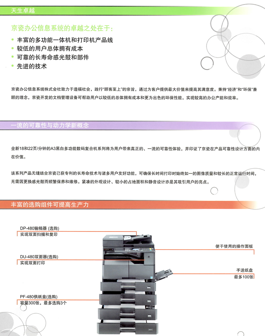 描述:快速啟動,體積緊湊,靜音設(shè)計;強調(diào)用戶體驗的細(xì)節(jié)設(shè)計,操作方便快捷;豐富的復(fù)印打印功能選擇,可以滿足各類輸出需求;先進(jìn)的掃描功能可對電子資料進(jìn)行電子化處理, 實現(xiàn)信息共享;可通過選購件擴(kuò)展強大的傳真功能